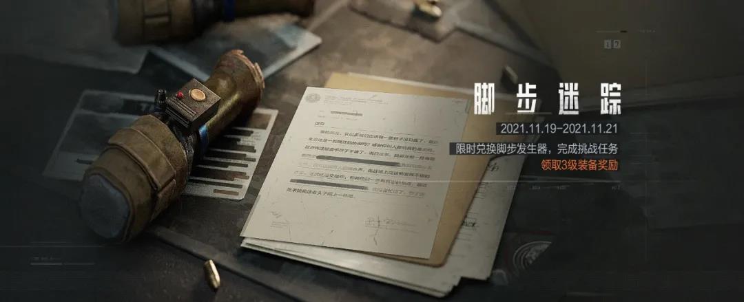 【脚步迷踪】限时活动于11月19日上线,先锋们参与【脚步迷踪】活动,在单局内收集到相应的材料,便可在活动页面兑换脚步发生器。值得一提的是每人每日兑换数量有限,先锋们若需求量较大 ,活动期间还可在市场中直接购买。