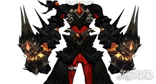 双手与双膝有鬼面造型的装饰性护甲,使人联想到部落中威猛善战、狂放不羁的勇士,再搭配金橙的色彩,仿佛有火焰在其中熊熊燃烧。