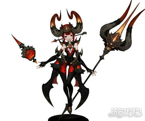 巨大的S形龙角,使用暗红与亮金的组合,再配以暗金色的头冠,仿佛一位尊贵的女王于烈焰之中加冕。