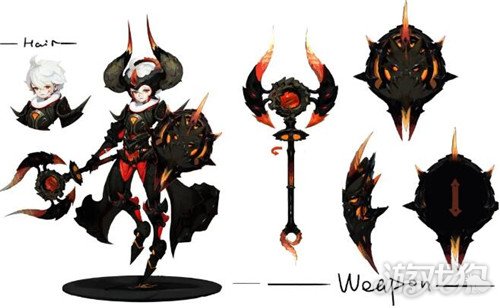 燚龙套装整体上都采用了燚龙身上熔岩和火焰的元素,以经典的红黑配色为主,再点缀以亮金、暗金与橙色。在头部,使用了西方龙角的造型,运用色彩的渐变呈现出由燃烧至冷却的观感,再配合各个职业不同的风格做了相应的调整,在凸显职业特色的同时使套装看起来更加霸气!